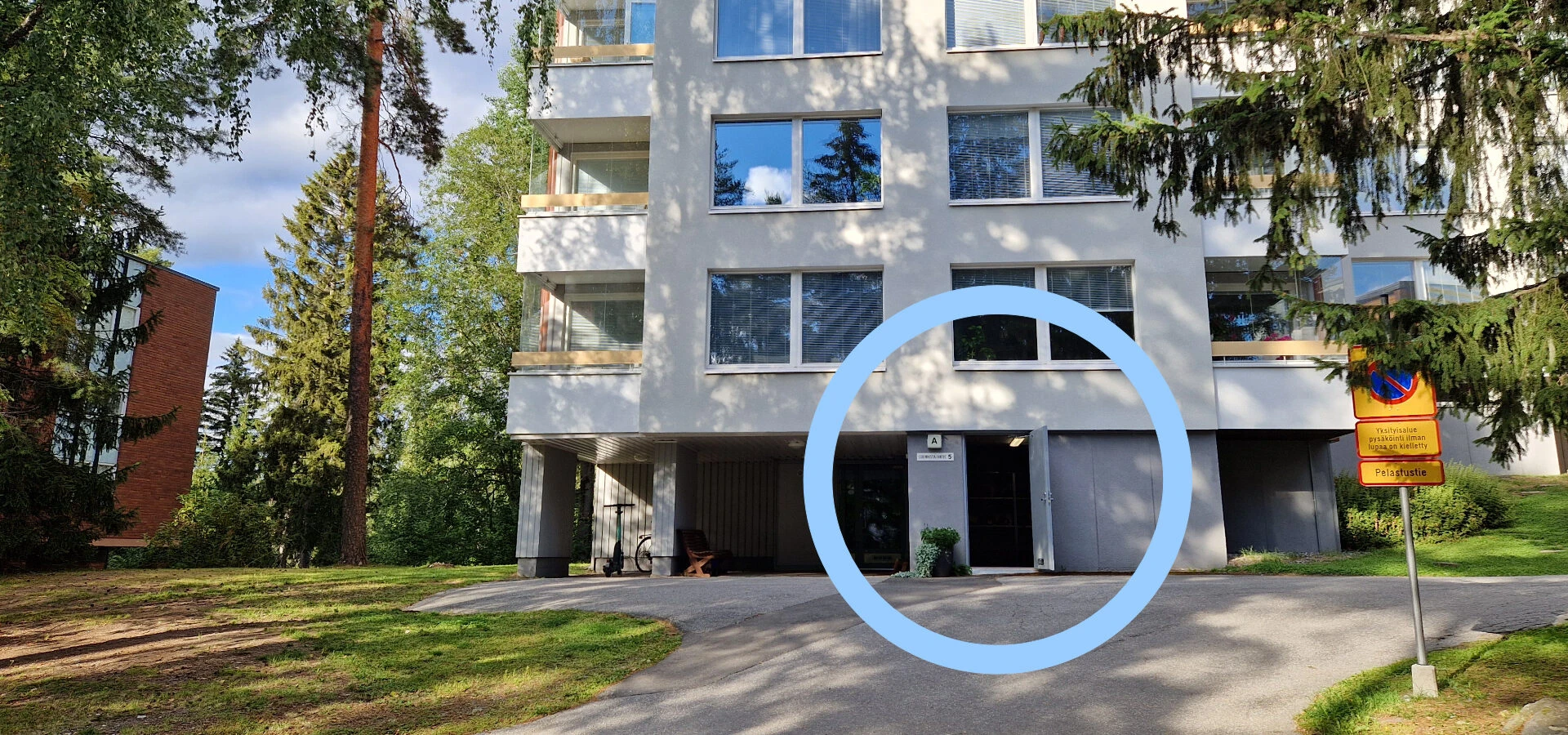 Saat varaston osoitteen varauksesi yhteydessä. Varaston ovi näkyy ympyröitynä tämän sivun alareunassa olevassa kuvassa.